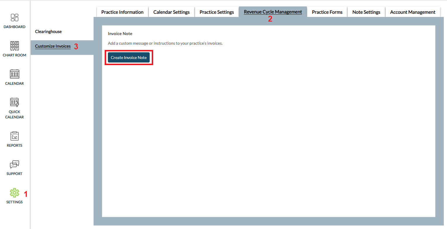 Administrators with access to Settings can set up a custom note for all practice invoices.