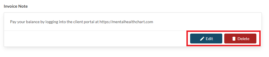 Use the Edit button to make changes to the invoice note. Use the Delete button to delete it entirely (note: this cannot be recovered once deleted).