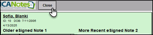 When you've finished reviewing, click the Close button to return to the compiled note