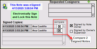 Doing so permits you to compare the two versions of the electronically-signed note. Click the checkboxes next to each digital signature, then click to Compare 2 Esigned Notes