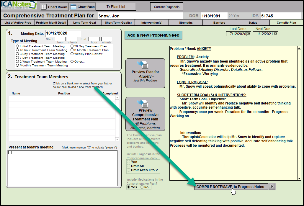 1. Start a Treatment Plan. For more information on how to create a Treatment Plan, please see our General Treatment Plan Knowledge Base Article.