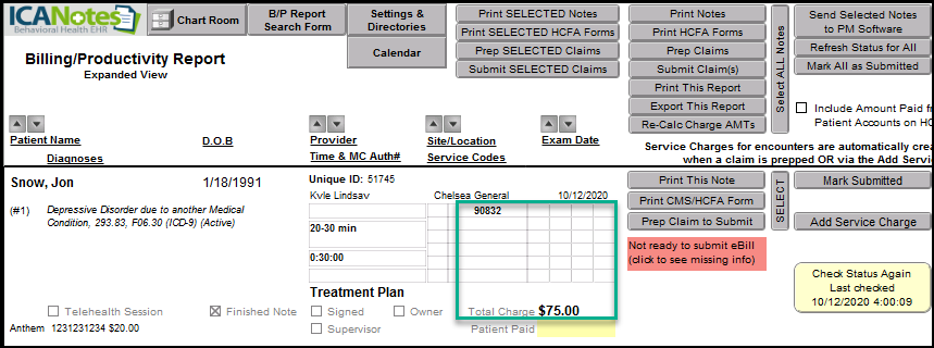 In the Billing/Productivity Report, you will be able to see the service code(s) and billing rate(s) for the Treatment Plan.