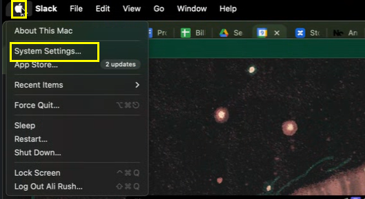 Click the Apple menu in the top-left corner and choose System Settings (or System Preferences on older macOS versions).