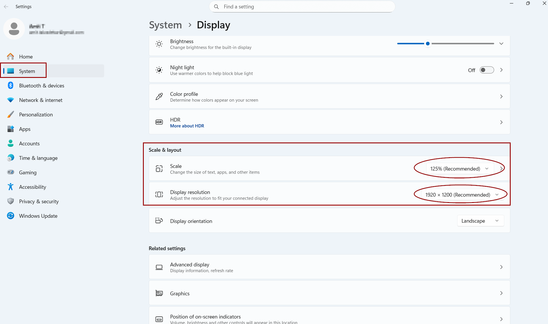 For multi‑monitor setups, select the specific monitor at the top of the Display settings page before making changes.