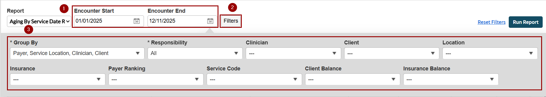 The Aging by Service Date Report is designed to help billers manage outstanding balances more effectively. This report allows billers to view charges with outstanding balances and track how long they have been outstanding, based on the service date.