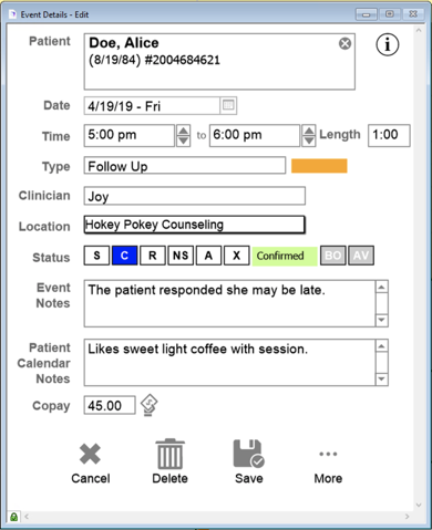 7. Anything documented in the Patient Reminder Status Report will update the appointment in the calendar.