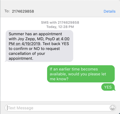 Summer wanted an earlier appointment and responded. Then, she responded yes to the appointment.
