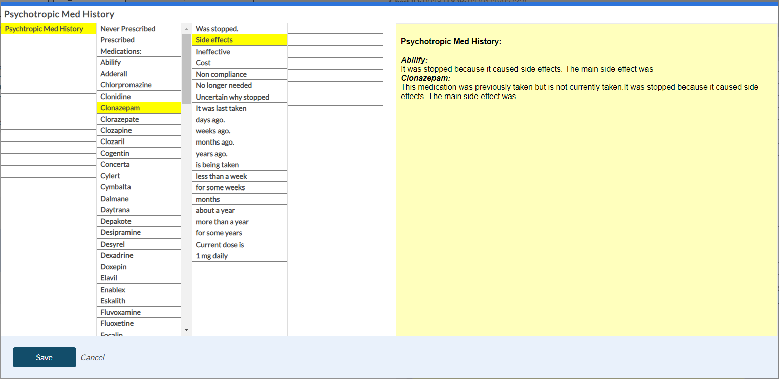Psychotropic Med History