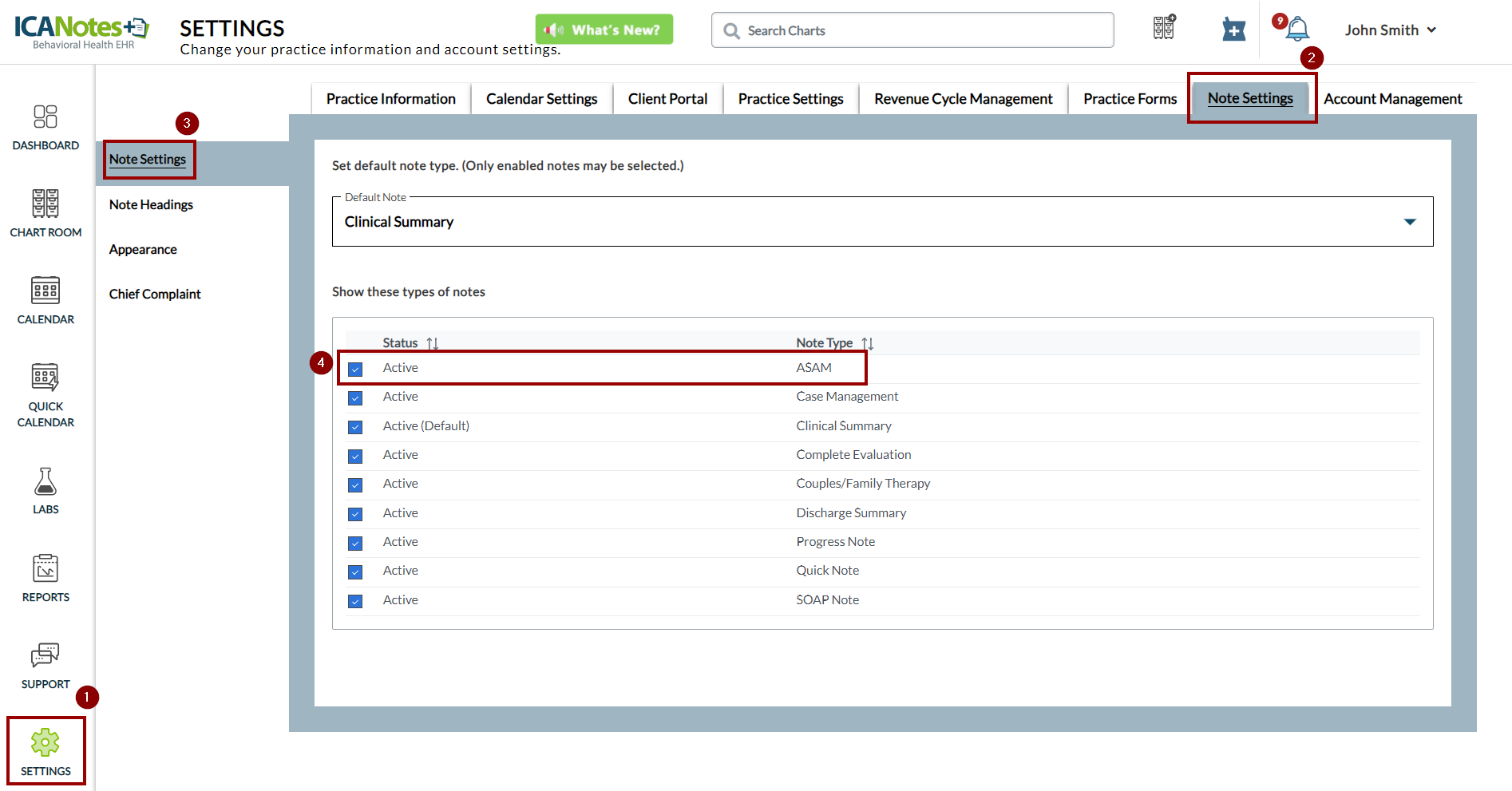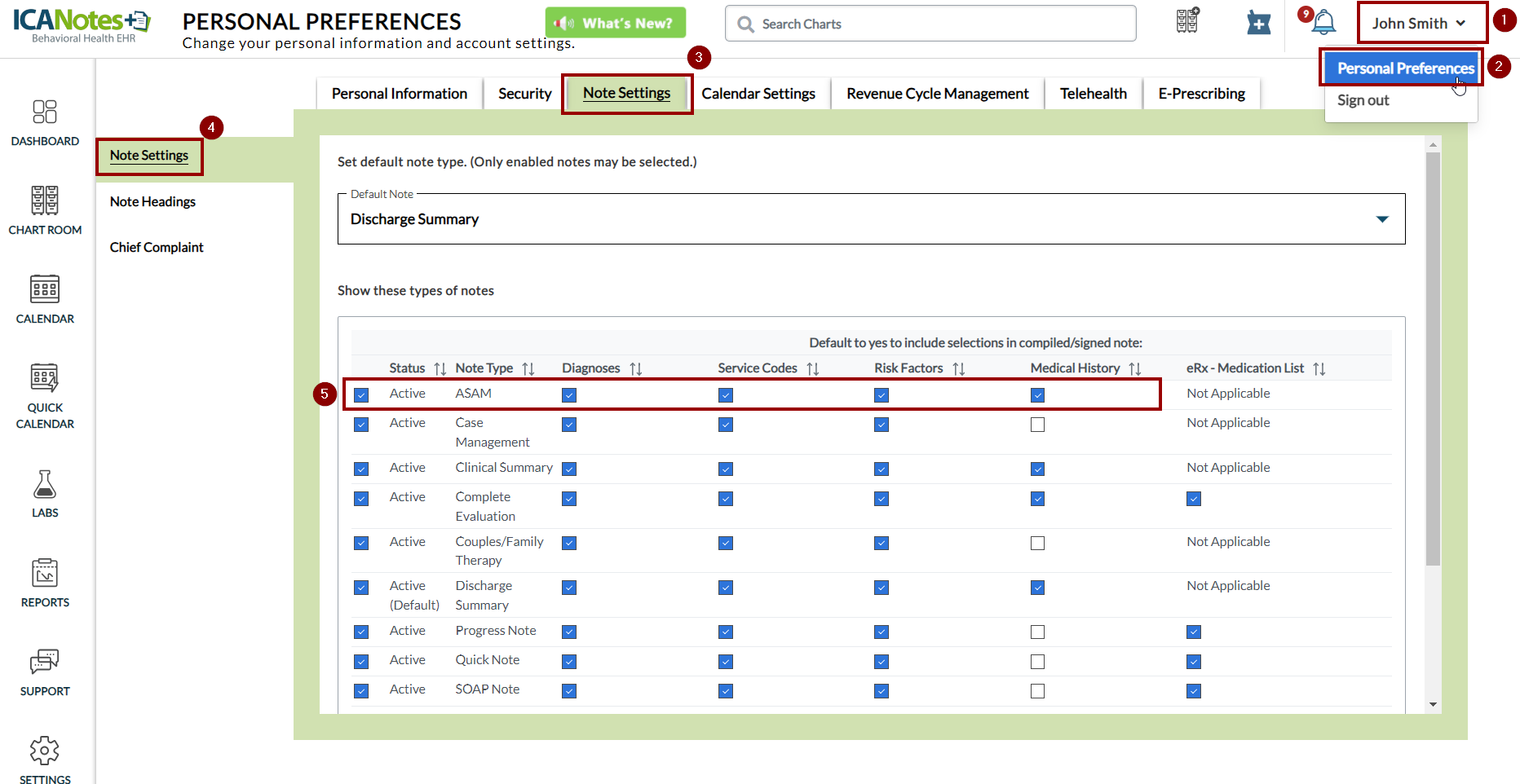Once you've activated the ASAM feature for your practice, you can configure it through the Practice Settings and Personal Preferences sections, as illustrated in the screenshot below: