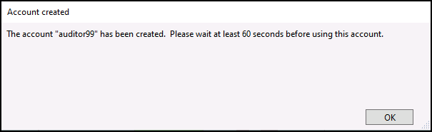 - Username: Important that the word 'auditor' be within the username. An option is to use group name and auditor.