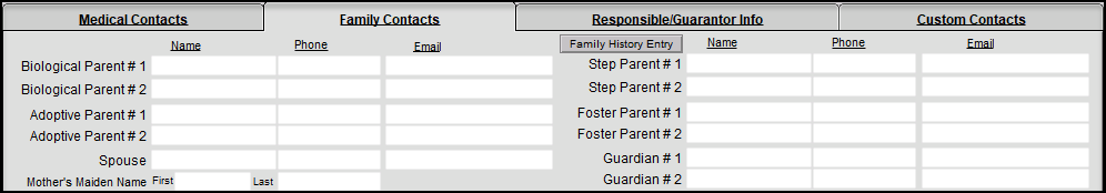 Other Contacts > Family Contacts tab: This tab is for documenting family contacts.