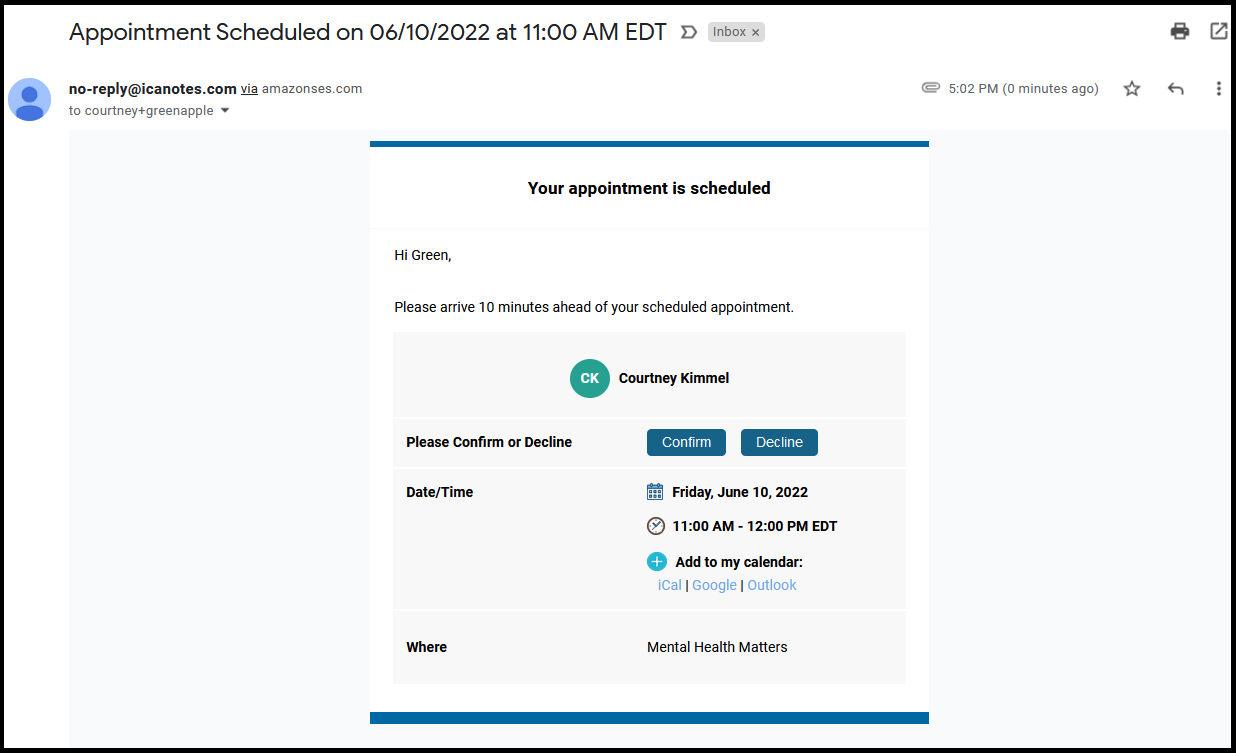 Enabling email appointment notifications will email your client as soon as you schedule an appointment for them. Your client must have an email address specified in their chart to receive email appointment notifications.