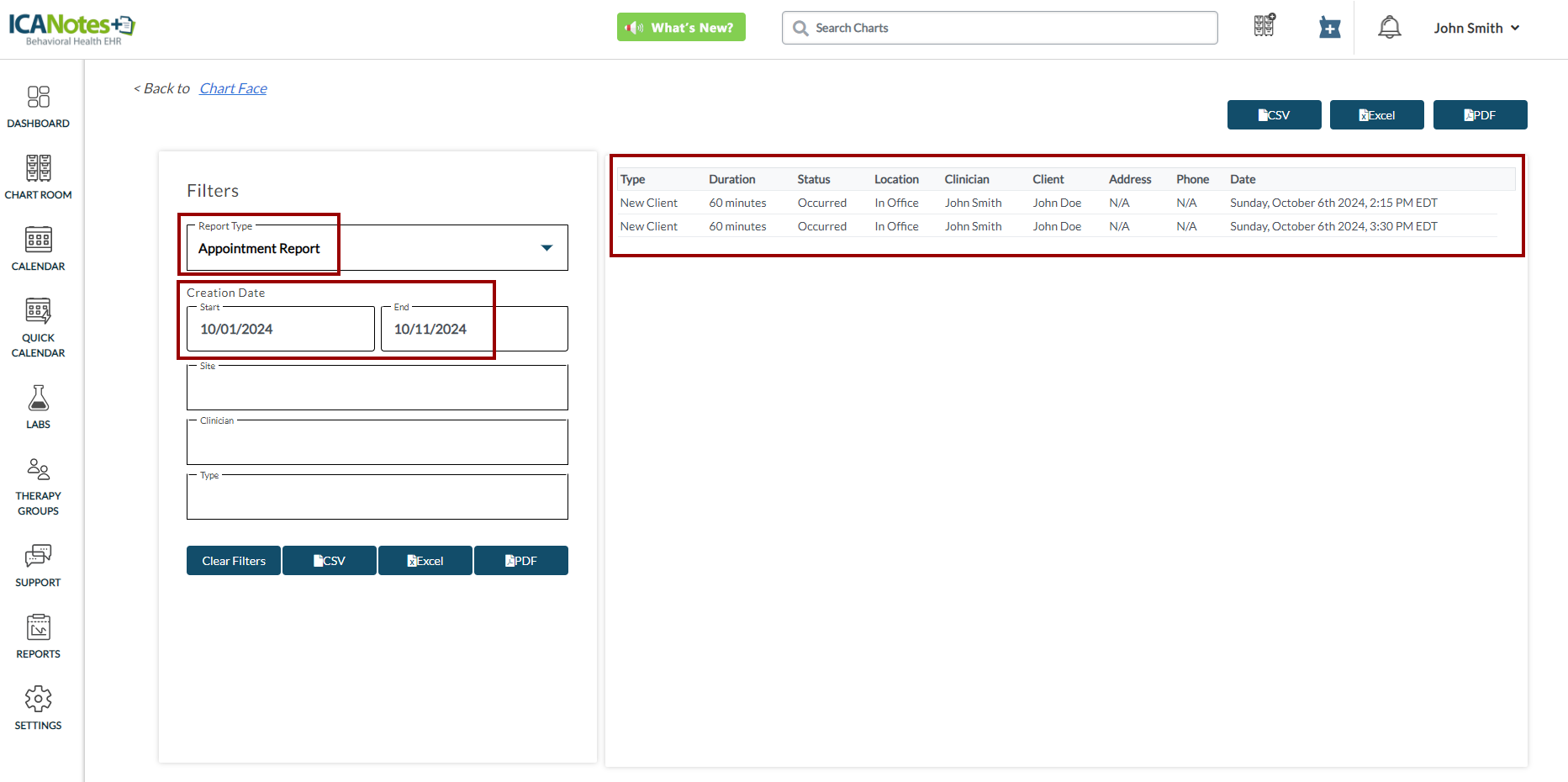 Overview The Appointments Report helps staff review and manage upcoming and past appointments based on various filters such as client, date, site, clinician, and appointment type. By using this report, users can quickly identify scheduling patterns, ...