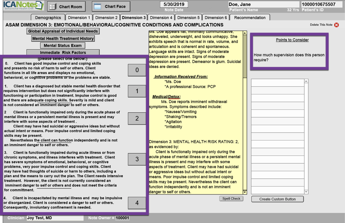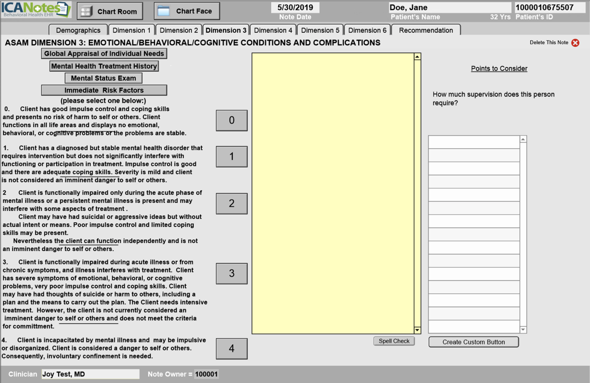 4. The Dimension 3 tab is for ASAM Dimension 3: Emotional/Behavioral/Cognitive Conditions and Complications window.