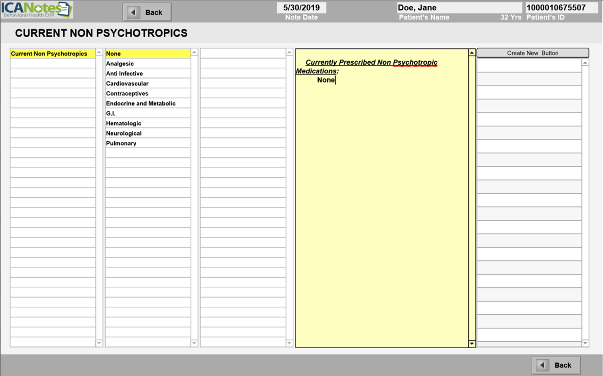 Buttons available on the second tab: (Only use the buttons that apply to your patient.)