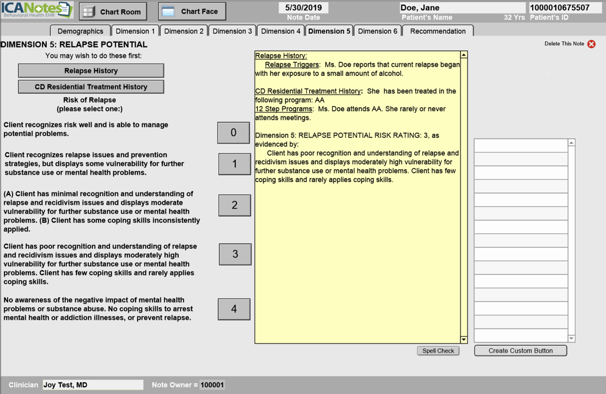 6. The Dimension 5 tab is for Dimension 5: Relapse Potential window.