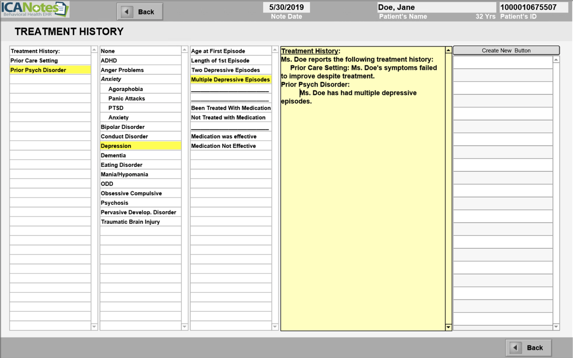 Buttons available on the fourth tab: (Only use the buttons that apply to your patient.)