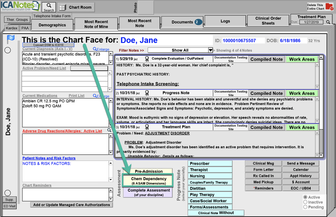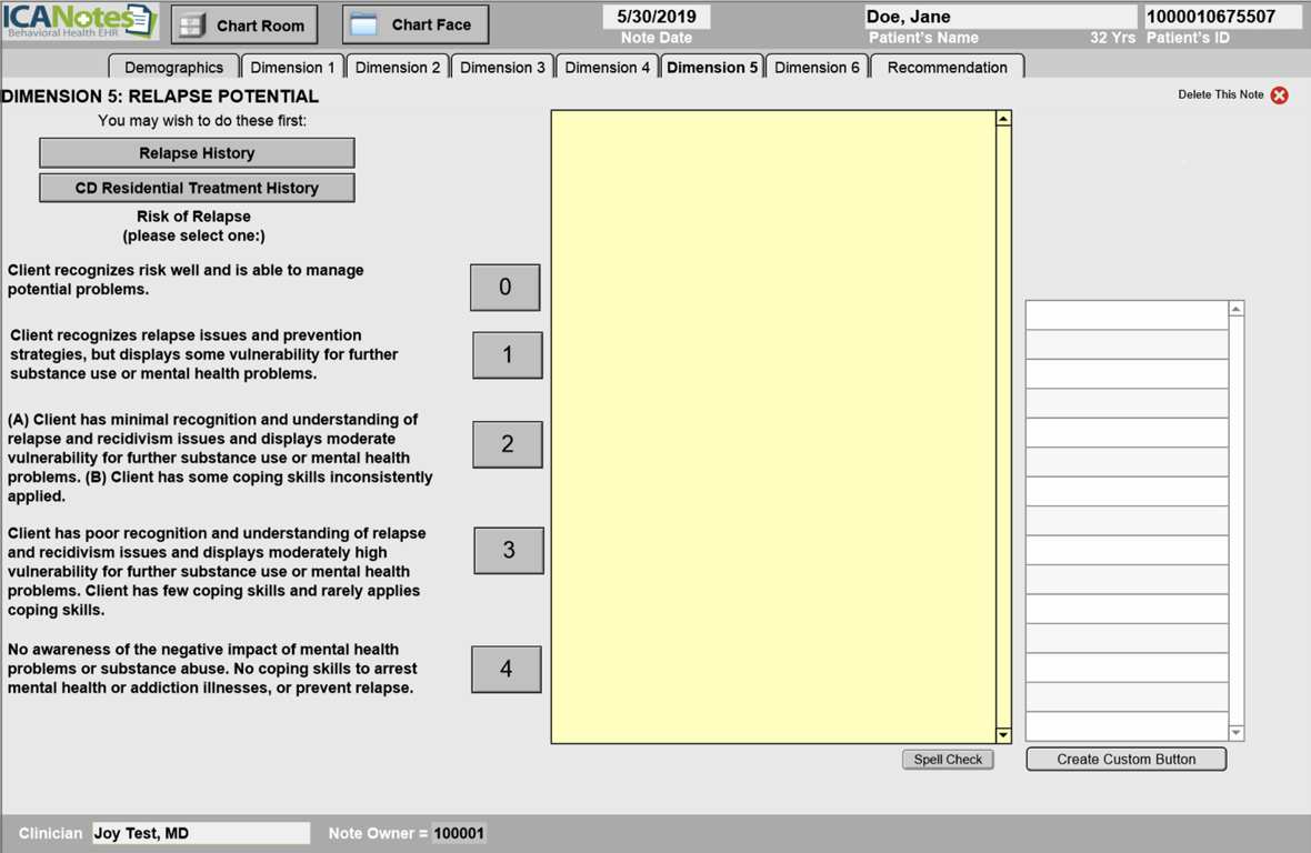 1. From the patient's Chart Face, choose the Chem Dependency (6 ASAM Dimensions) button.