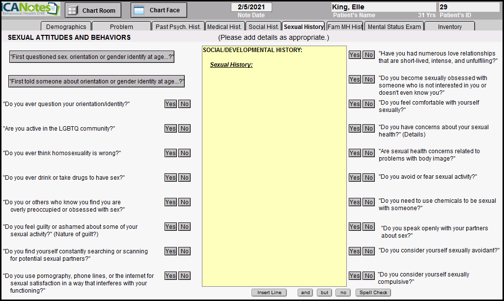 The Sexual History Tab is not available for Prescribers, this tab focuses on behaviors relating to the patient's sexual history.
