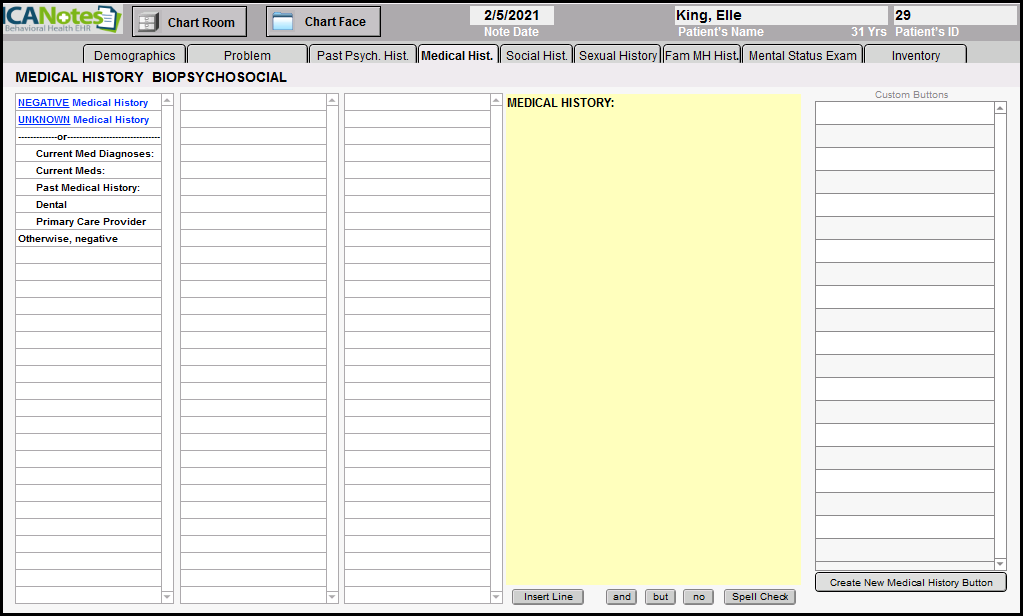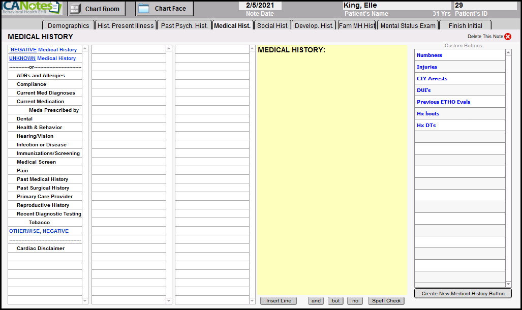 The Medical Hist. Tab allows you to document any medical diagnosis, current medications, past medical history, dental history and Primary Care Provider.