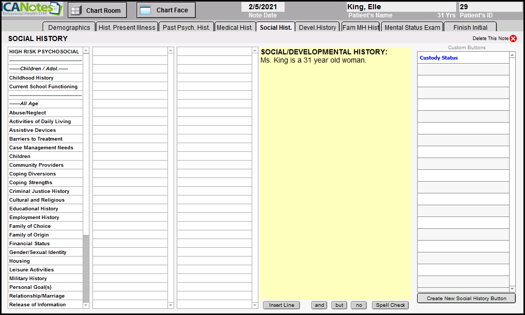 The Social Hist. Tab allows you to document on the patient's social, cultural and family factors that may influence them.