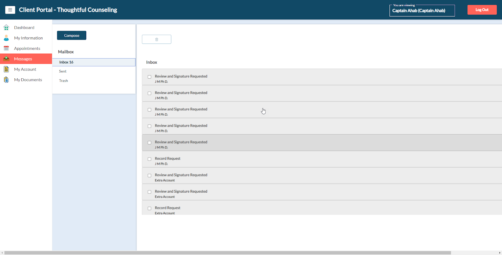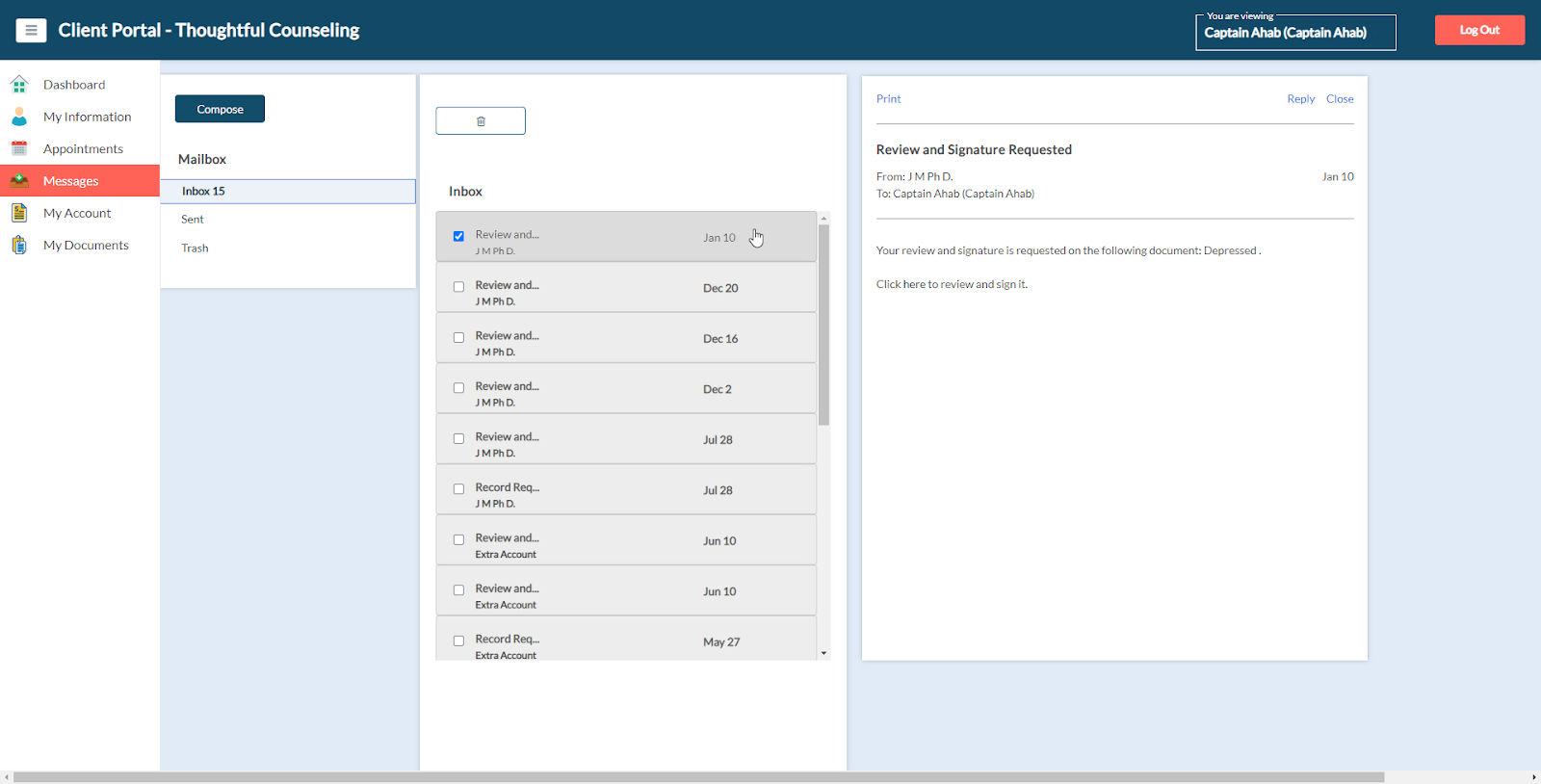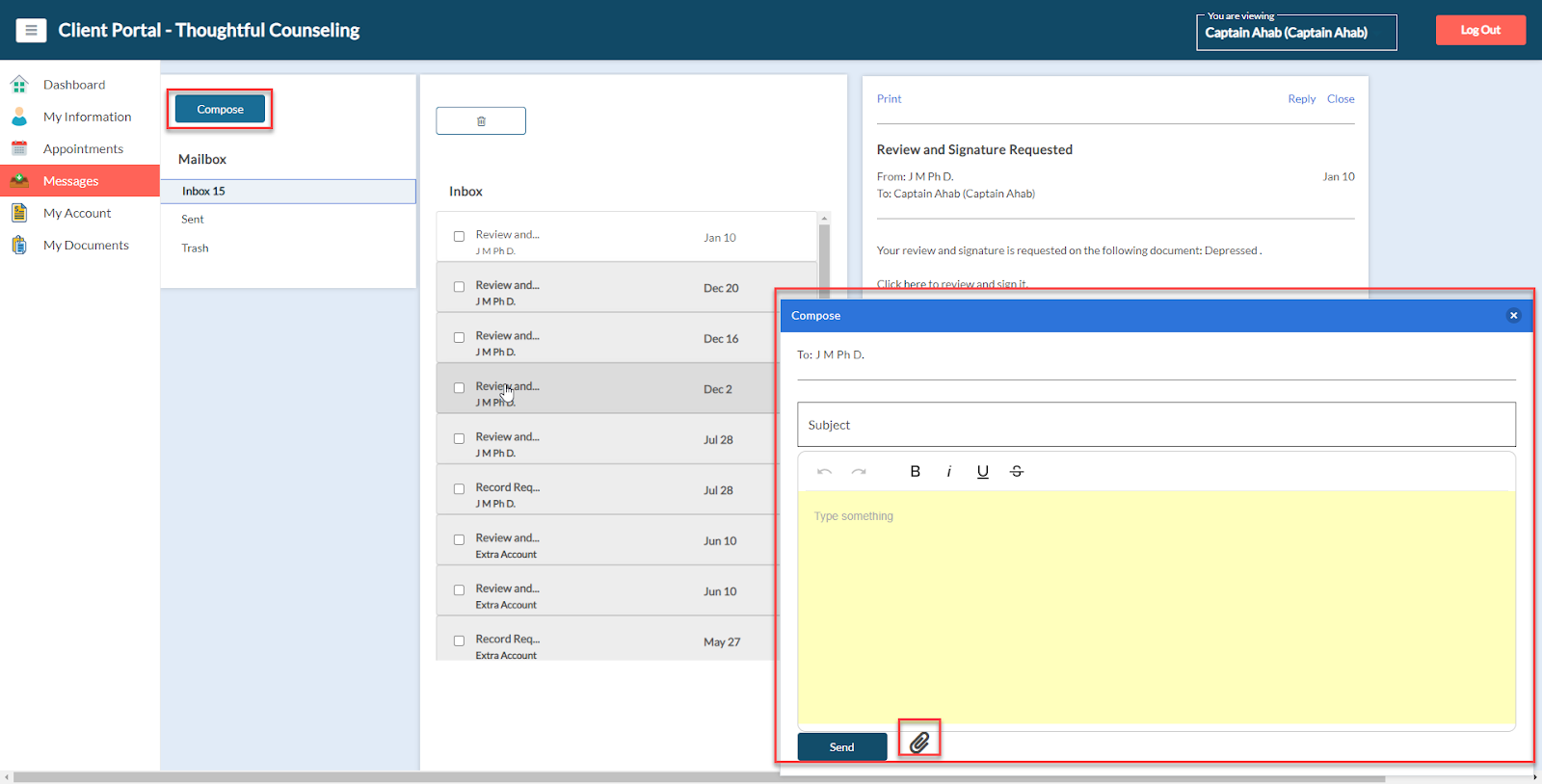 Clients can exchange secure messages with your office via the Messages section.