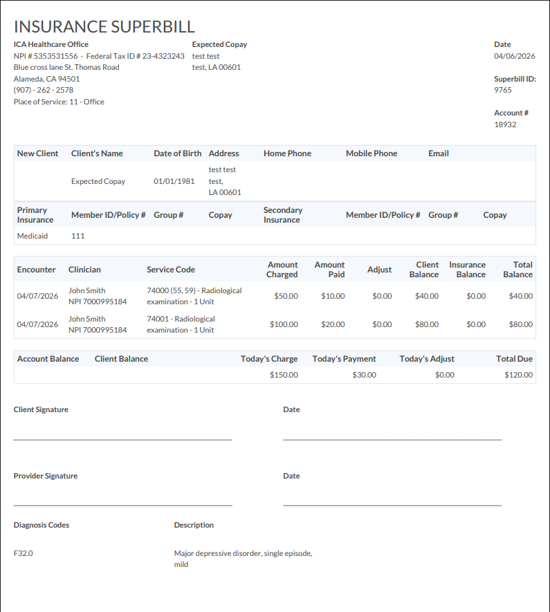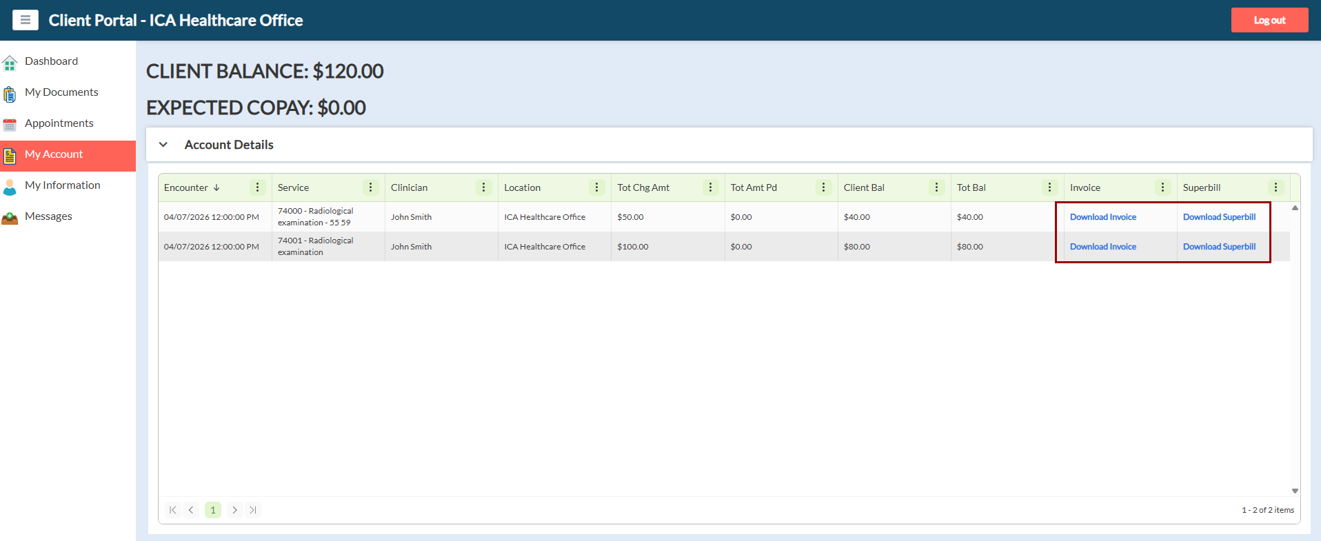 Download Documentation: Access and download invoices and superbills in PDF format for their records or for insurance reimbursement.
