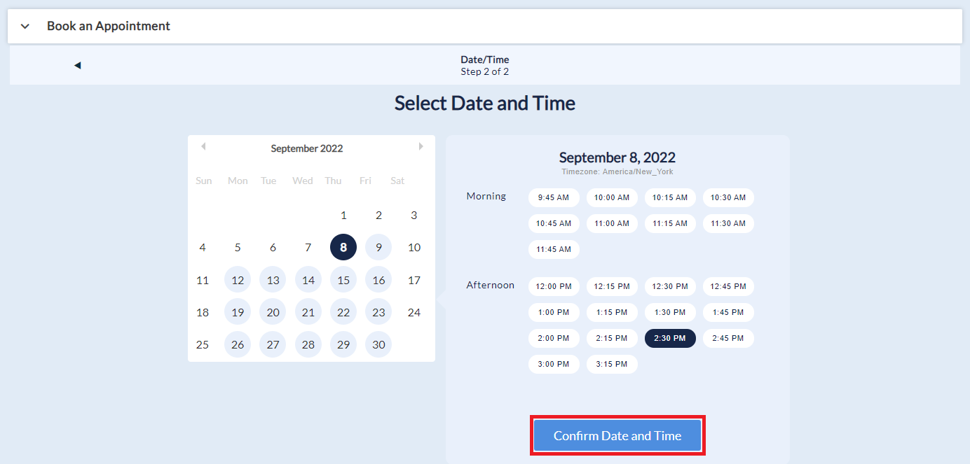 - Select a date and time based on provider availability.