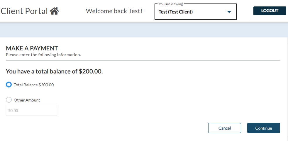 Note: If the client selects Cancel during the process, they will be returned to the My Account page in the portal.