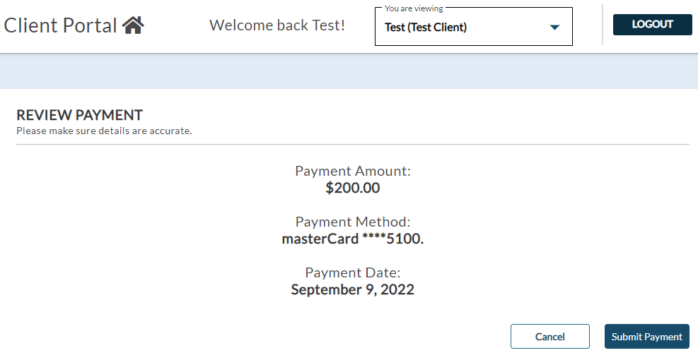 Note: Cancel will bring them back to their My Account page in the client portal.
