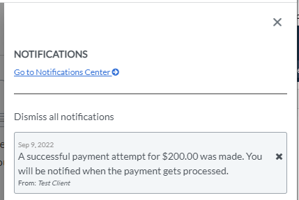 You will receive a notification when the client makes a payment attempt as well as when the payment is successfully processed.