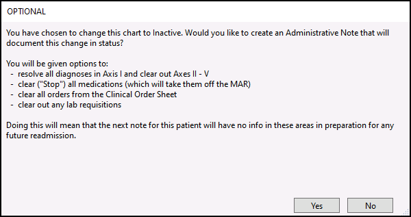 3. Click 'Yes' in the dialog that appears asking if you would like to create an Administrative Note.