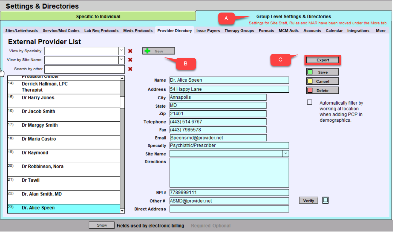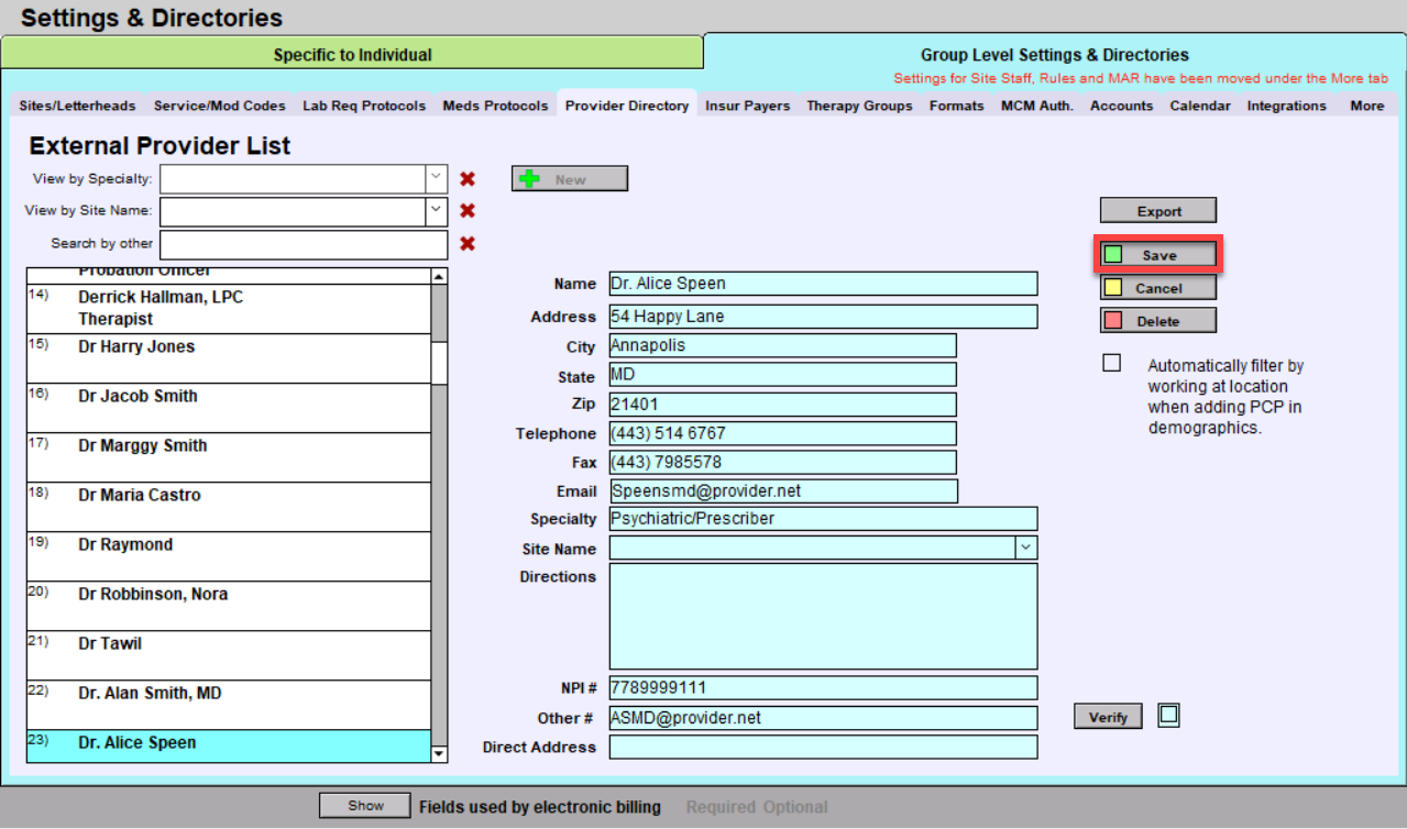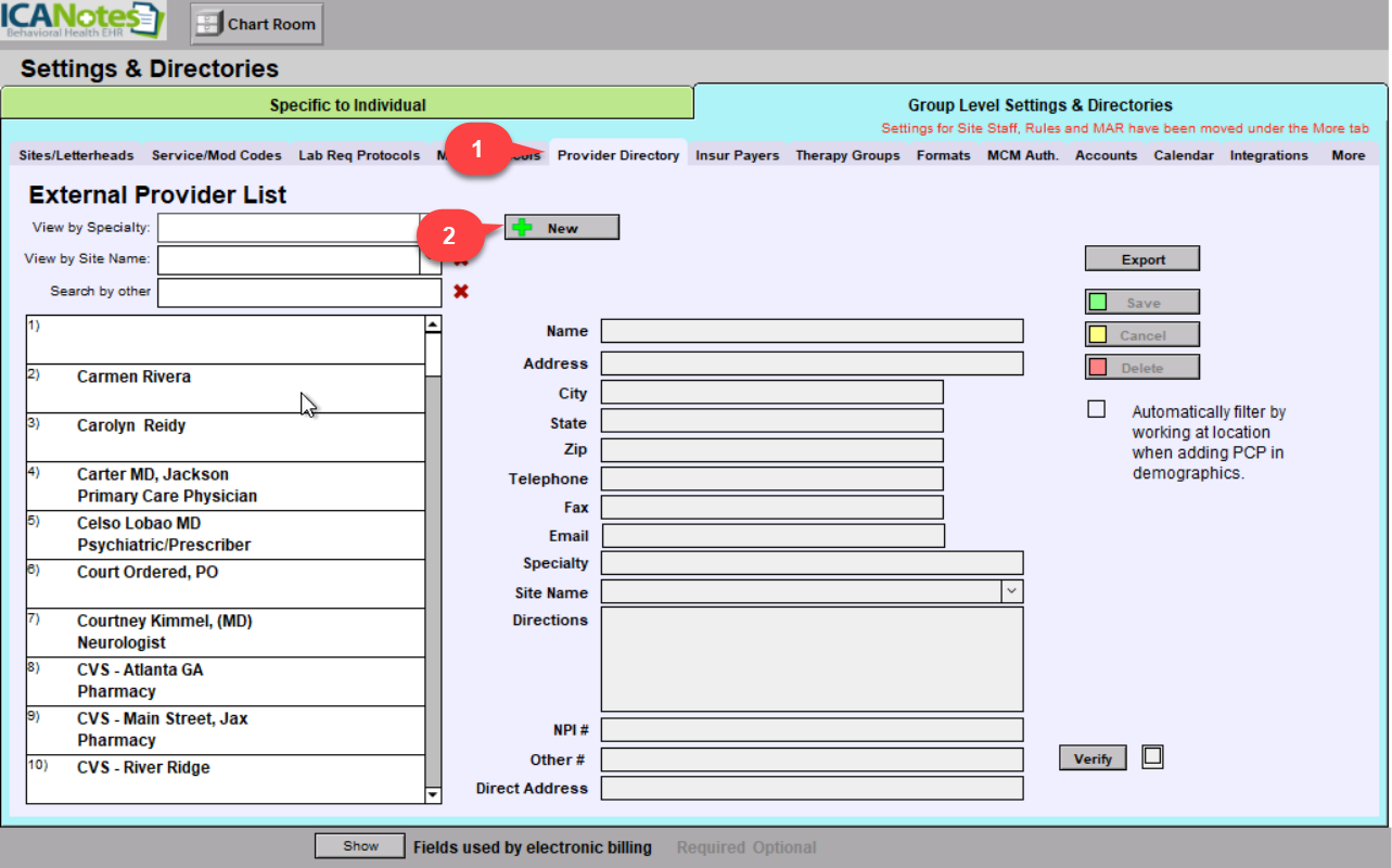 The ICANotes External Provider List works much like a Rolodex and allows you to keep a digital directory of external contacts that are relevant to your practice.