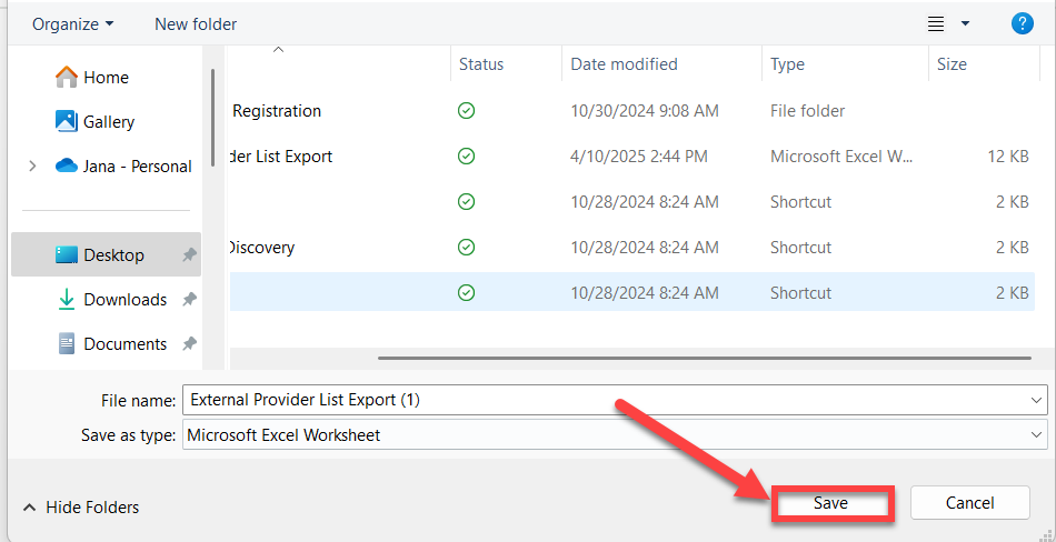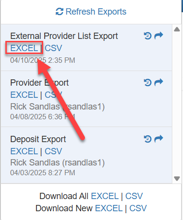 4. Click the format that you want to use (Excel was used for this demonstration). A window will open to decide the location where you like to Save your file on the computer.