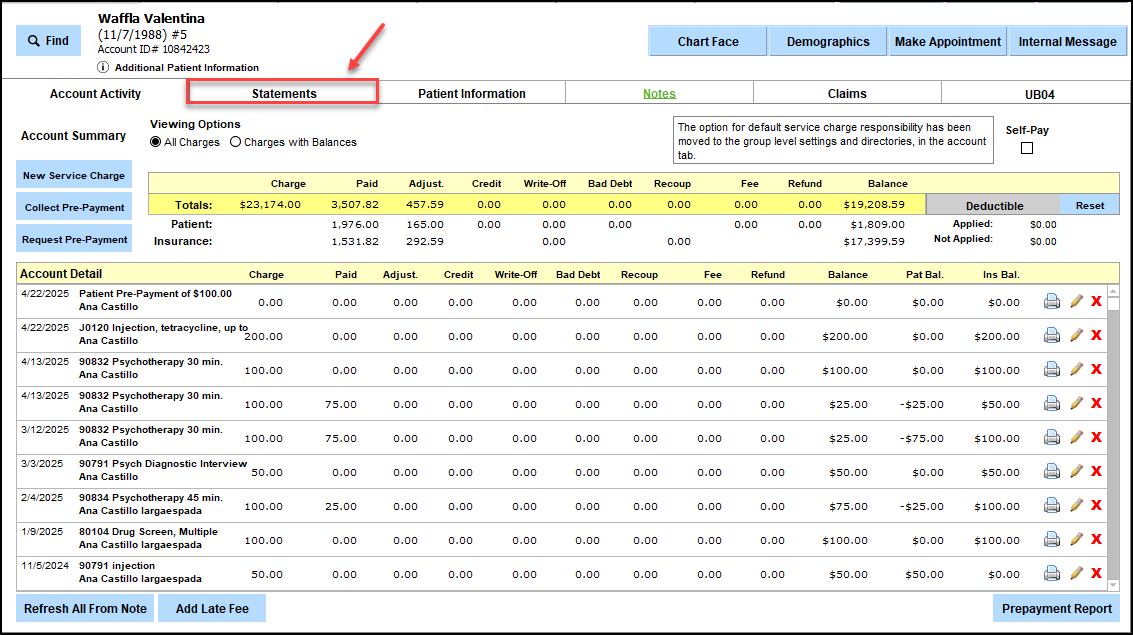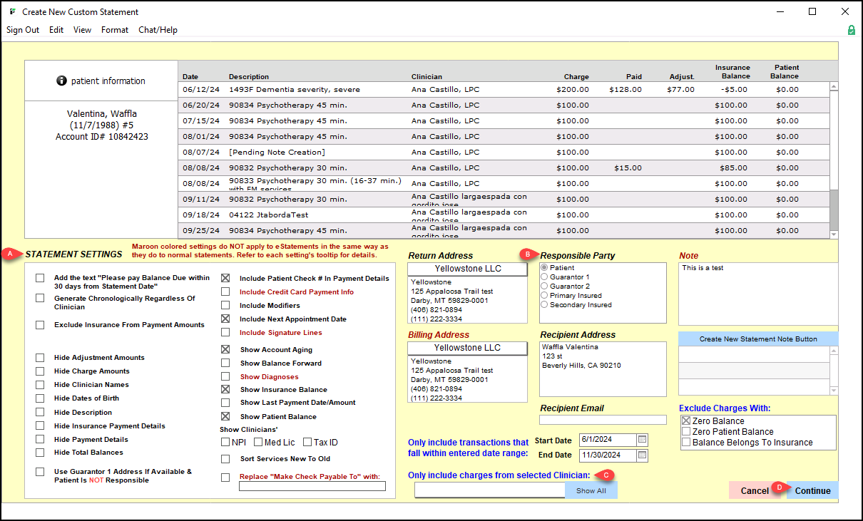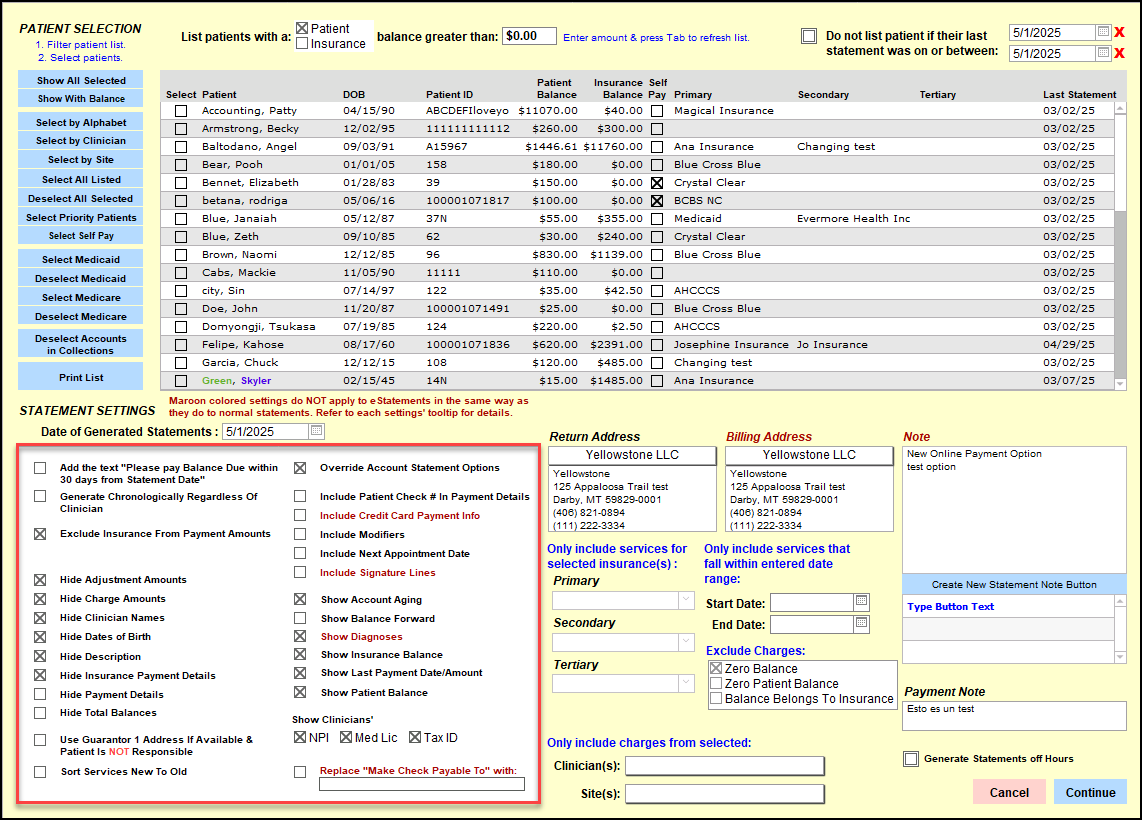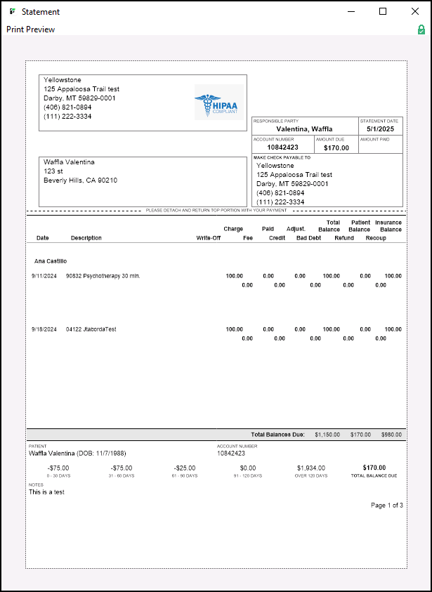 Overview The software allows billers to generate statements for clients with a remaining balance. Statements can be generated, printed, and downloaded individually or in batches. However, statements must be generated before they can be printed or ...