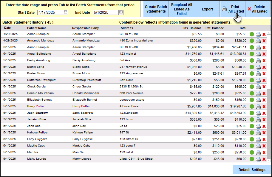 Alternatively, if you want to print one-by-one, click the button in the row of the patient you want to print.