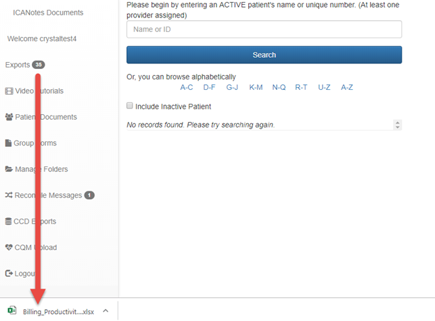 Once exported, login to the ICANotes Documents/Upload site (https://upload.icanotes.com) with your ICANotes username and password. From the navigation menu on the left, click to view recently exported reports, then download the exported report (Excel or CSV).