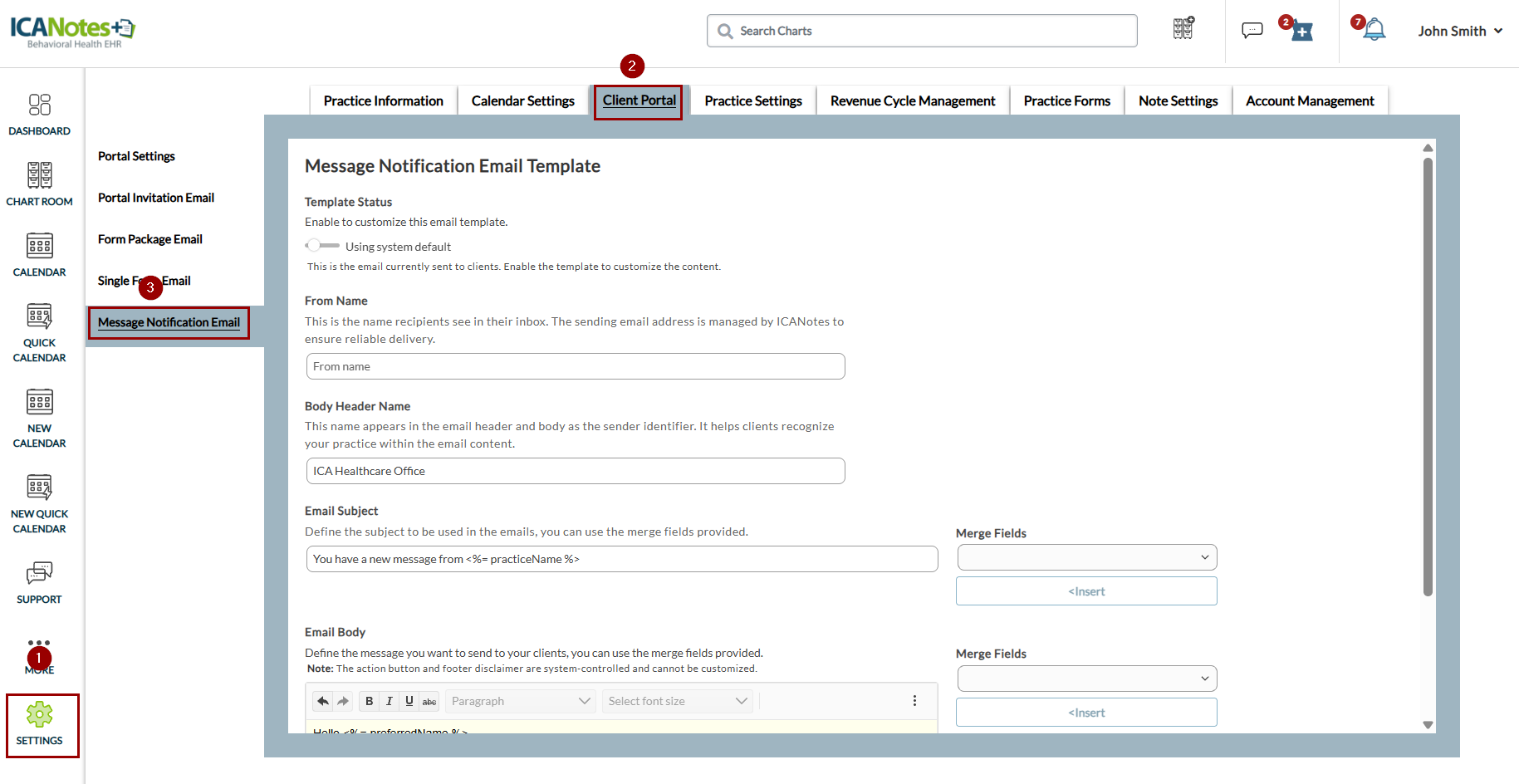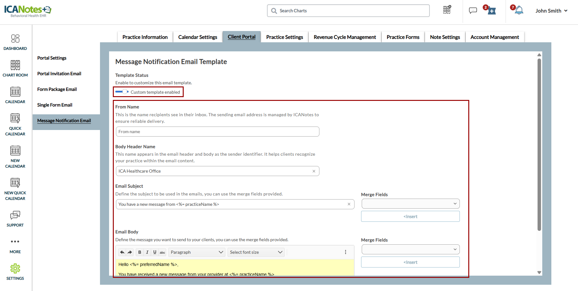 This article explains how to customize the email notification clients receive when a new message is available in the Client Portal. It covers how to update the email subject and message content, use merge fields to personalize the notification, and ensure the communication aligns with practice preferences before it is sent.