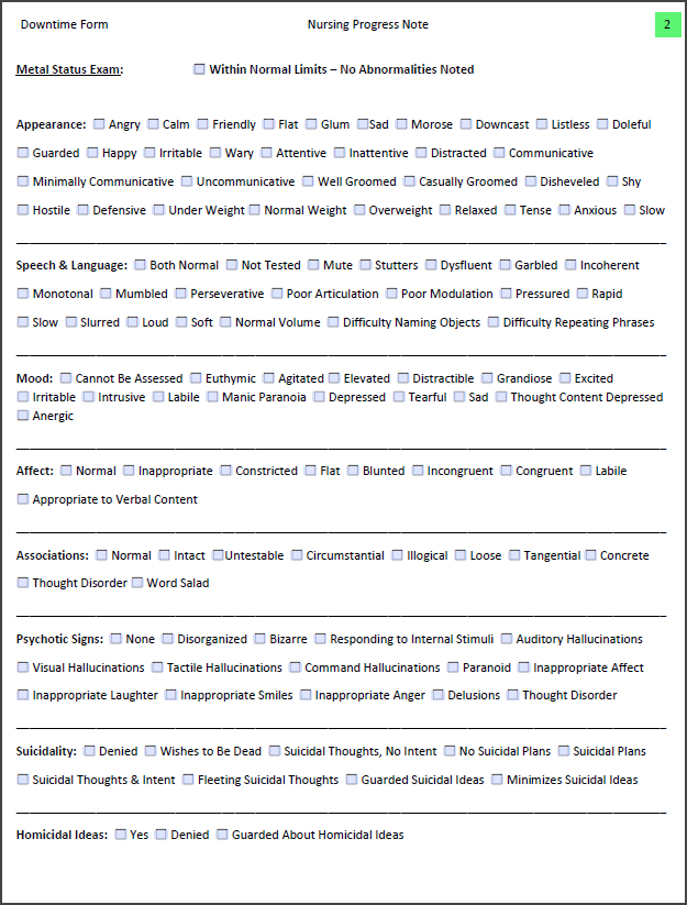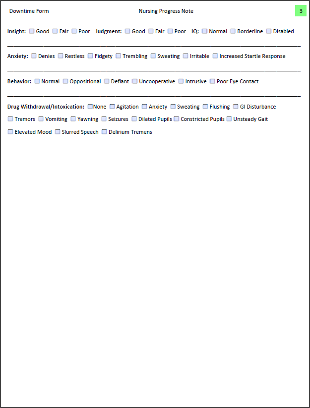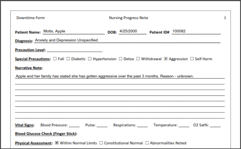 We've provided a fillable, PDF Downtime Form for Nursing Progress Notes. This Form is specific for persons under the Discipline that uses said Note type.