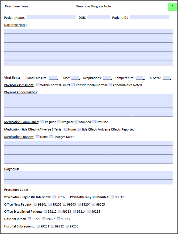Server Downtime Form - Prescriber Progress Note [ICANotes]
