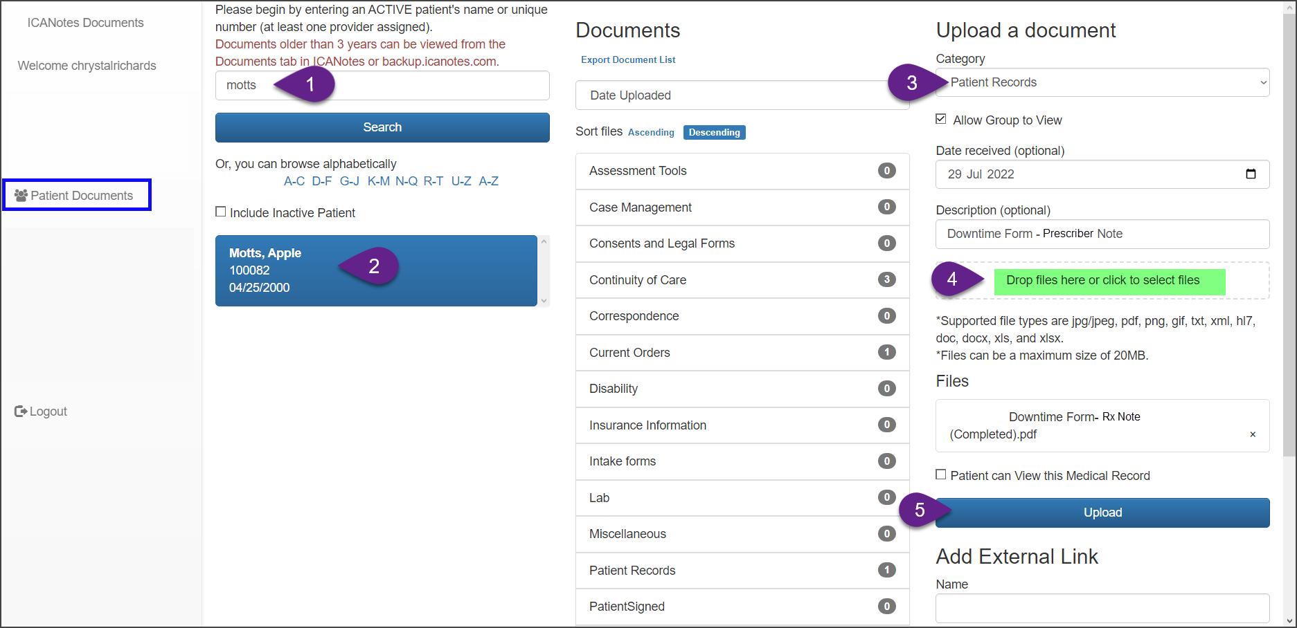 While you're in Patient Documents: