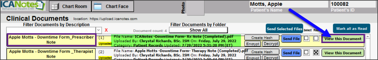 When the downtime has subsided you can see the uploaded note in your Client's/Patient's Chart.