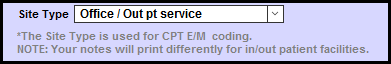 This site type will not populate the updated E&M Coding. If this is the Site Type listed for your location, you will need to update it.