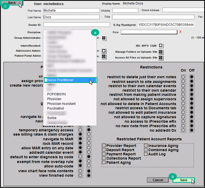 Click the Discipline field to populate the list of available Disciplines then select the prescribing discipline you would like to to assign.
