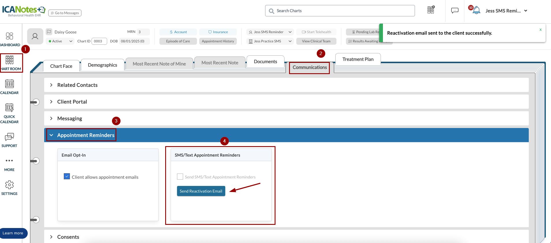 Navigate to Chart Room > Communications > Appointment Reminders.