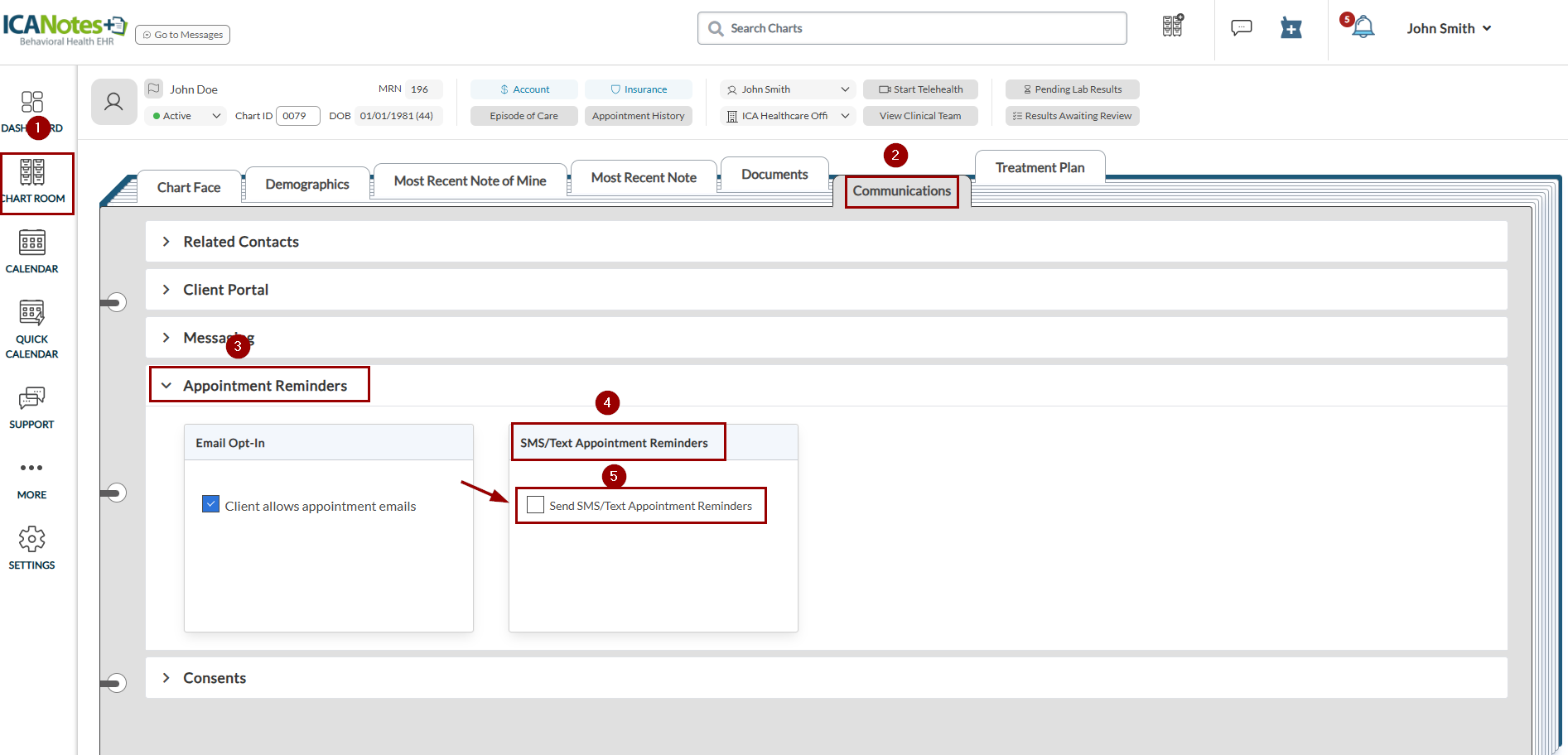 If a client stops SMS reminders, the SMS/Text Appointment Reminders checkbox in their chart will be disabled.