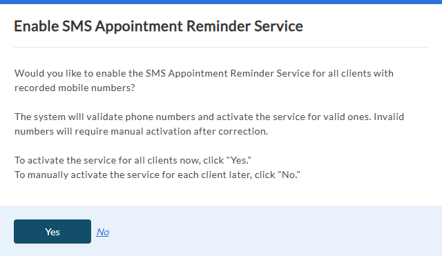 Clients must opt in to receive SMS reminders (either by default or individually).