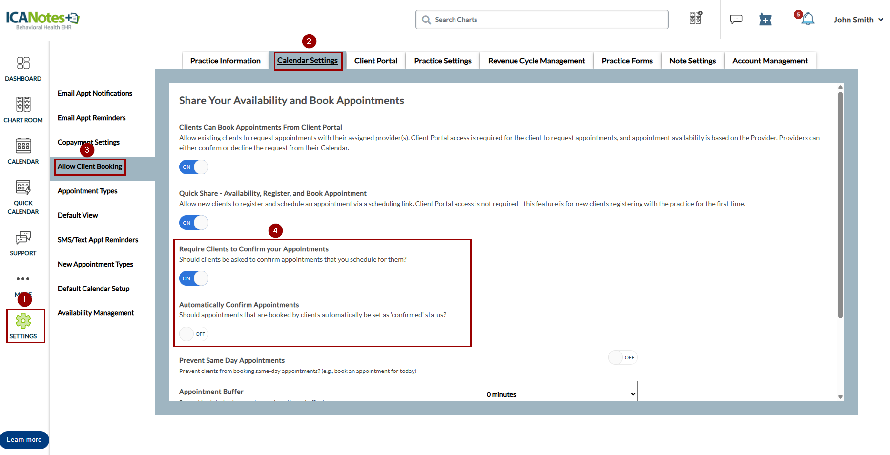 The following options were moved from the SMS/Text Appointment Reminders section to the Allow Client Booking section: