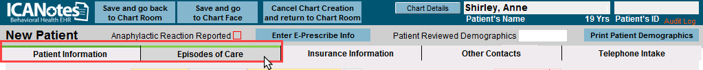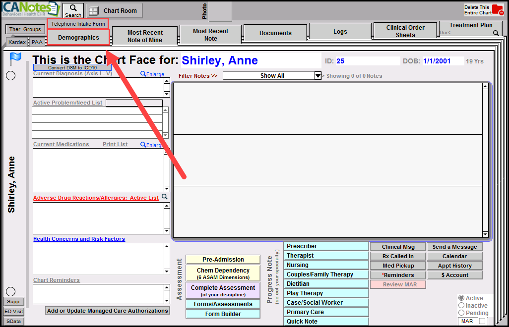 You can visit Demographics and the Telephone Intake Form from the Chart Face.