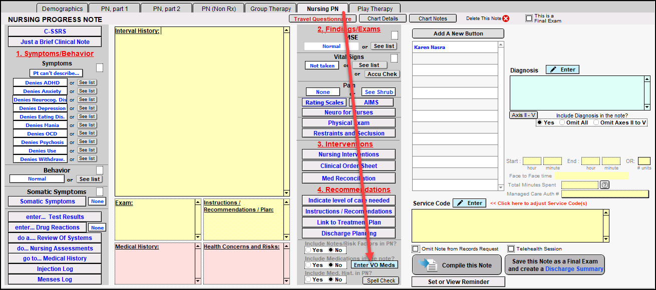 1. When a nurse creates a progress note, from the Nursing PN tab go to Medications by clicking the Enter VO Meds button.